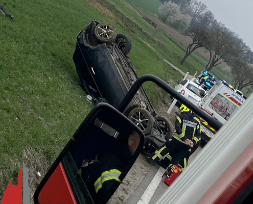 Am frühen Abend des 10. April wurde die Stadtfeuerwehr zu einem Verkehrsunall alarmiert. An der Einsatzstelle angekommen, wurde ein am Dach liegender PKW vorgefunden. Die Rettungskräfte versorgten den Fahrer, das Fahrzeug wurde auf die Räder…