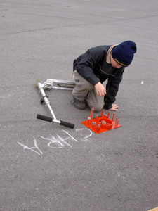 Stefan durchfährt gerade ein Hindernis mit Höhenbegrenzung. |