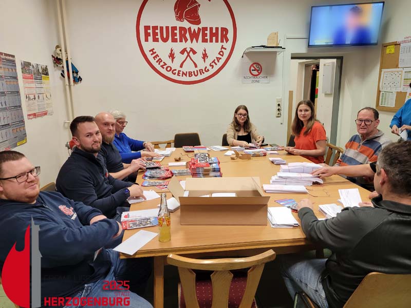 Spendebriefe einkuvertiert. Die Spendenfolder 2025 werden