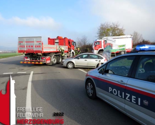 Einsatz, Technisch Am 12. November 2022 kam es auf der Landesstraße 113 Höhe Inzersdorf zu einem Verkehrsunfall.