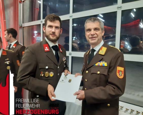 Allgemein Am 28. Dezember 2022 konnte der Bürgermeister der Stadtgemeinde Herzogenburg die Abzeichen der Ausbildungsprüfung Atemschutz übergeben.