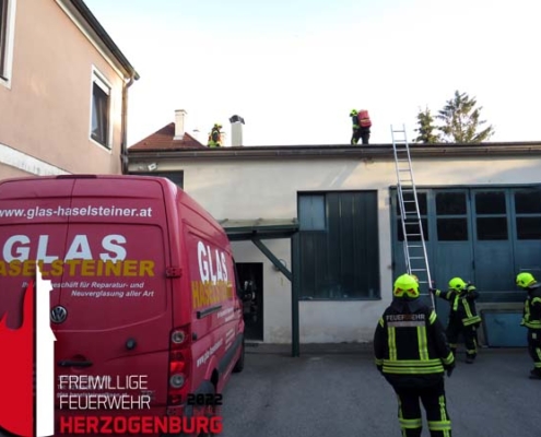 Übungsannahme war ein Unfall auf dem Flachdach eines Gewerbebetriebes, die verletzte Person musste rasch und schonend vom Dach gerettet…