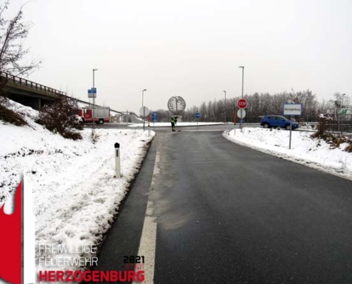 Einsatz, Technisch urch einen technischen Defekt an einem PKW kam es am Abend des 5.November 2021 zu einem Betriebsmittelaustritt auf der Abfahrtrampe der S33 bis zur Einmündung in die Landesstraße.