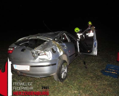 Nach einem mehrfachen Überschlag blieb ein PKW im Acker liegen. Die Insass*innen konnten sich selbst…
