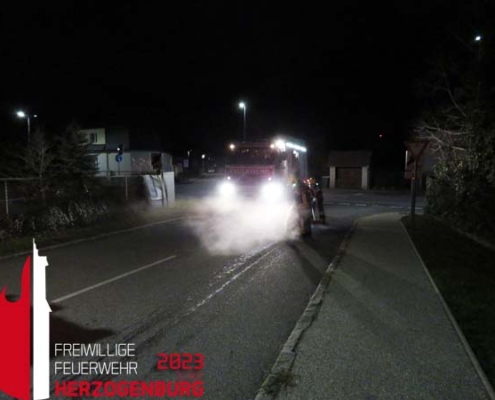 Einsatz, Technisch Am Stefanitag 2023 musste die FF Herzogenburg eine Betriebsmittelspur von der Hainer Straße bis zum Bahnhof Herzogenburg mittels Bindemittel abstreuen.