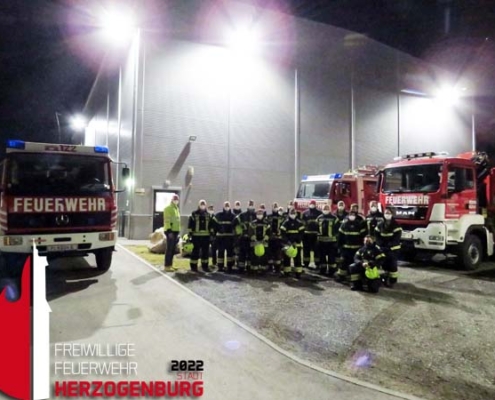 Übung Am 10 Februar 2022 nahmen jeweils 10 Feuerwehrmitglieder der Feuerwehren Herzogenburg-Stadt und Oberndorf in der Ebene an einer Begehung in einem Herzogenburger Industriebetrieb teil.