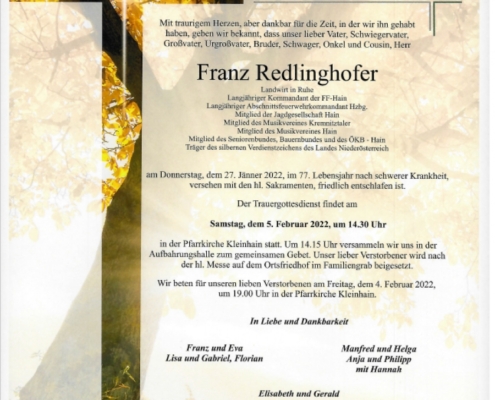 Allgemein In tiefer Trauer müssen sich die Kamerad*innen der Stadtfeuerwehr von ihrem Ehrenabschnittsfeuerwehrkommandanten Franz Redlinghofer verabschieden.