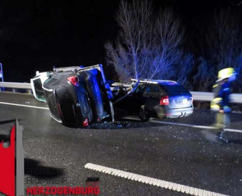 Ein PKW Transporter war umgestürzt und lag quer zur…
