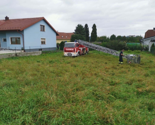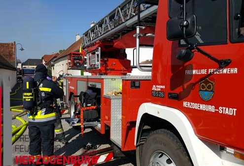 Zusätzlich zu den örtlichen Einsatzkräften wurde die Drehleiter der FF Herzogenburg-Stadt zur Brandbekämpfung mitalarmiert.