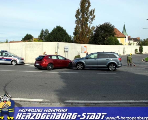Einsatz, Technisch Zum Zusammenstoß zweier Personenkraftwagen kam es am 04. Oktober am Roseggerring kurz vor der Eisenbahnunterführung.