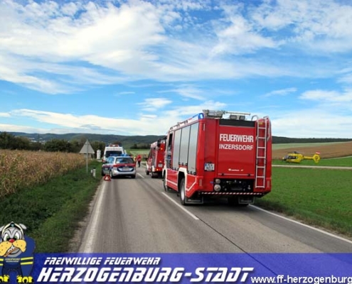 Einsatz, Technisch Um die Mittagszeit des 5. Oktober kam es auf der Landesstraße 110 im Bereich des Stockerkreuzes zu einem Verkehrsunfall mit insgesamt drei beteiligten Fahrzeugen und mehreren Verletzten.