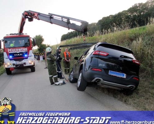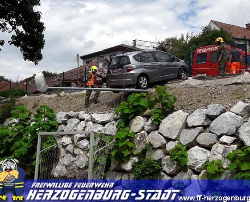 Einsatz, Technisch Ein über einer Böschung hängender Personenkraftwagen bedurfte eines Feuerwehreinsatzes in Oberwölbling.