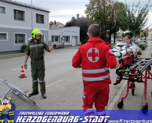 Einsatz, Technisch Am Nachmittag des 11. August wurde die FF Herzogenburg-Stadt zur Unterstützung des Rettungsdienstes als Tragehilfe in eine Wohnhausanlage alarmiert.