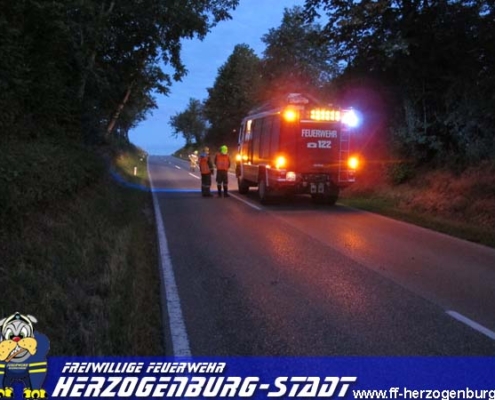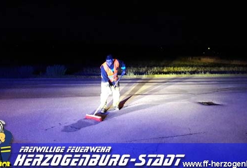 Mit drei Fahrzeugen wurde die Fahrstrecke des Verursacherfahrzeuges abgefahren und an neuralgischen Punkten Ölbindemittel aufgebracht.