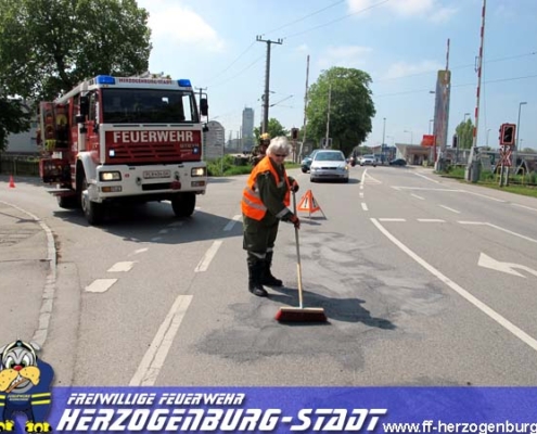 Einsatz, Technisch Eine Ölspur in der St.Pöltner Straße wurde am Vormittag des 6. Mai durch die ausgerückten Feuerwehrmitglieder mit Ölbindemittel bekämpft.