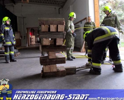 Übung Am 11. Mai stand der Umgang mit dem hydraulischen Rettungssatz am Übungsplan der Feuerwehren Herzogenburg-Stadt und Oberndorf in der Ebene.