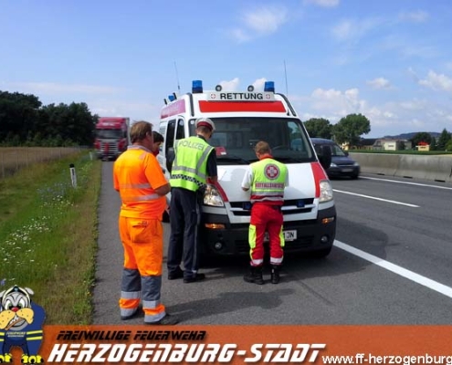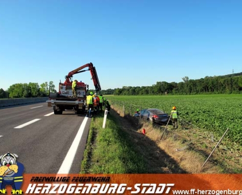 Auf der Kremser Schnellstraße war ein PKW von der Fahrbahn abgekommen und stand in der Grünfläche neben der Autobahn.