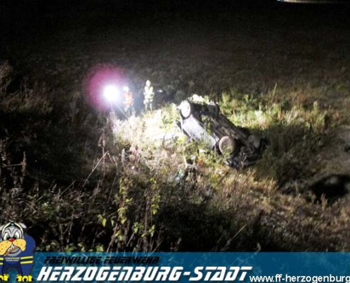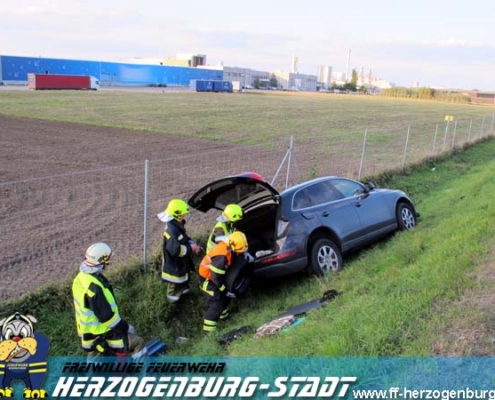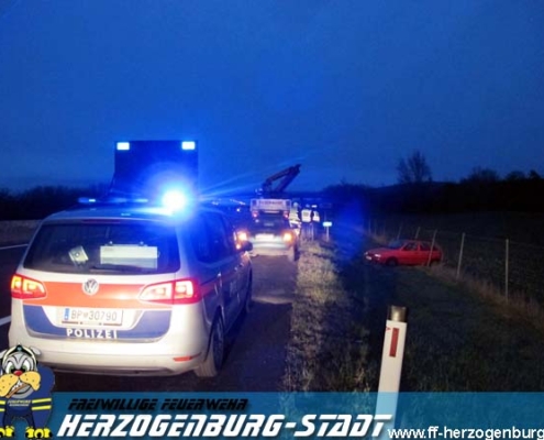Auf der Landesstraße 110 zwischen Herzogenburg und Walpersdorf kam ein Personenkraftwagen von der Straße ab und blieb im Entwässerungsgraben am Dach…