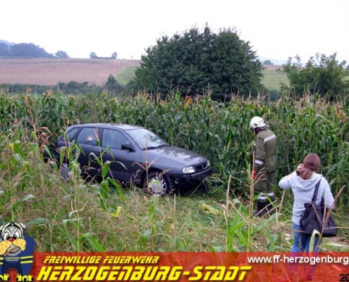 Eine Fahrzeuglenkerin kam von der Straße ab und landete mit ihrem Kleinwagen im angrenzenden Kukuruzacker.