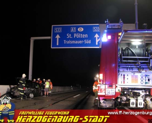 Einsatz, Technisch Zu einem Verkehrsunfall auf der S33, Richtungsfahrbahn St.Pölten, bei Traismauer-Süd wurden die Feuerwehren Herzogenburg-Stadt und Traismauer-Stadt am Abend des 23. August alarmiert.