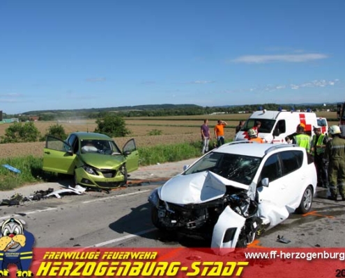 Einsatz, Technisch Auf der Straße von Herzogenburg Richtung Walpersdorf, der Landestraße 111, kam es am 26. August im Kreuzungsbereich Ortseinfahrt Wielandsthal zu einem Verkehrsunfall mit zwei beteiligten Kraftfahrzeugen.