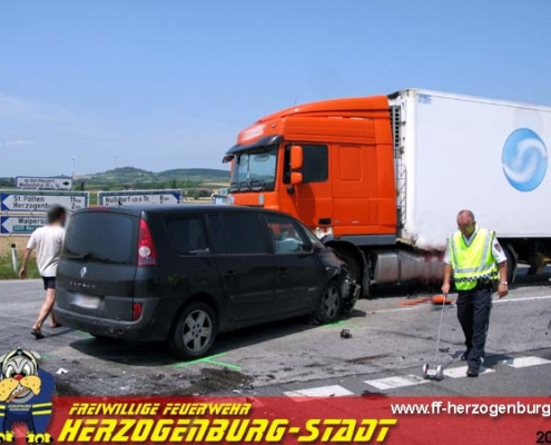 Einsatz, Technisch Telefonisch wurde die FF Herzogenburg-Stadt am 15. Juni zu einem Verkehrsunfall auf die L 113 im Bereich der Schnellstraßenanschlussstelle Herzogenburg-Nord gerufen.