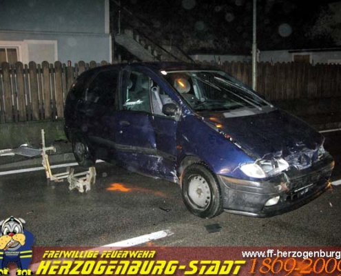 Einsatz, Technisch In der Nacht von Samstag auf Sonntag kam es in der St.Pöltner Straße zu einem Verkehrsunfall, ein PKW kollidierte mit einer Verkehrsinsel und stieß anschließend gegen eine Straßenlaterne.