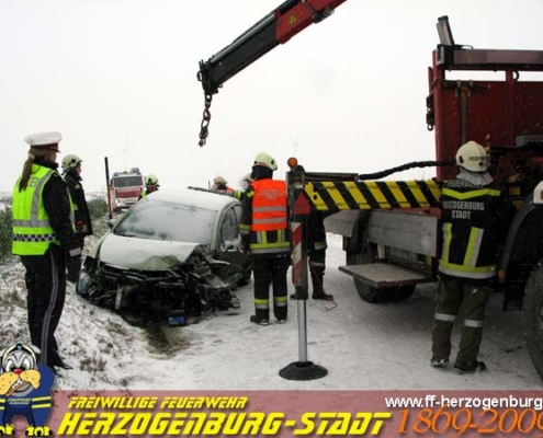 Einsatz, Technisch Zu einem Verkehrsunfall mit eingeklemmter Person, Person unter PKW, wurden die Feuerwehren Herzogenburg-Stadt und Oberndorf in der Ebene am Vormittag des 20. Novembers alarmiert.