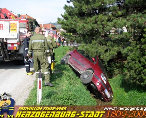 Einsatz, Technisch Während des Feuerwehrfestes wurde die FF Herzogenburg-Stadt zu einem Schweren Verkehrsunfall mit vermutlich eingeklemmter Person in Traismauer alarmiert.