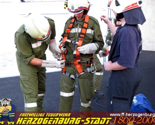 Mittels Rollgliss, 5-Punkt Gurt und Kran konnten sich die Feuerwehrmitglieder…