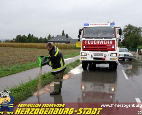 Einsatz, Technisch Eine Ölspur mussten von den Feuerwehren Herzogenburg-Stadt und Oberndorf in der Ebene am Nachmittag des 15. September beseitigt bzw. gebunden werden.