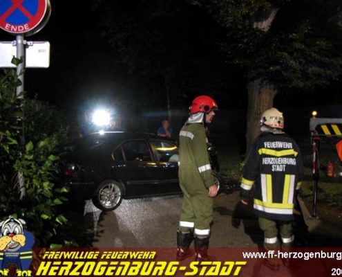 Einsatz, Technisch Am Auring in der Nähe der Sportplatzes krachte am 10. Juli ein PKW Lenker gegen einen Baum, dabei wurde er unbestimmten Grades verletzt.