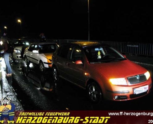 Einsatz, Technisch Auf der Herzogenburger Traisenbrücke ereignete sich am Abend des 17. Juni ein Zusammenstoß von insgesamt drei Personenkraftwagen.