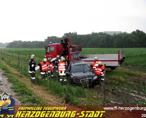 Vor ort wurde ein verunfalltes Fahrzeug aus einem Acker gezogen und die Unfallstelle…
