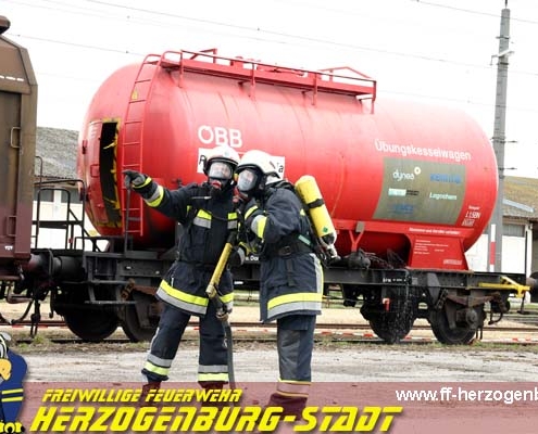 Übung Eine groß angelegte Gefahrgutübung fand am 29. März am Bahnhof Herzogenburg(Bezirk St.Pölten-