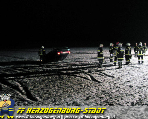 Aus ungeklärter Ursache landete ein Fahrzeug in der an Straße angrenzenden landwirtschaftlich genutzten Grundstücksfläche.
