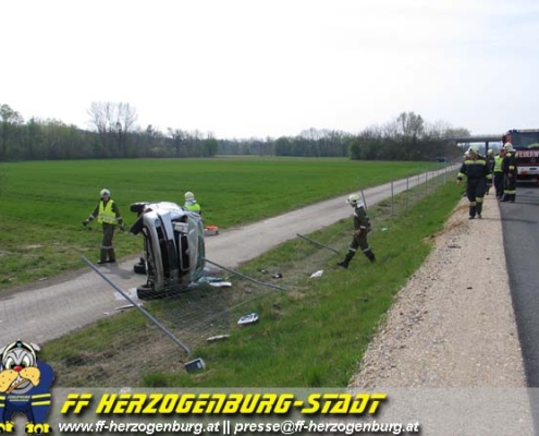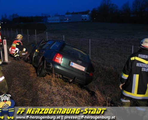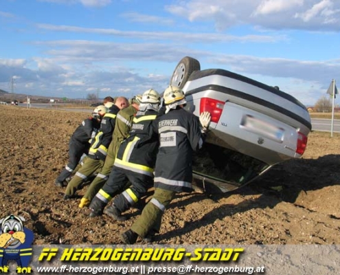 Eine junge PKW Lenkerin kam von der Kremser Schnellstraße ab, ihr Auto landete im Straßengraben auf der Seite liegend.
