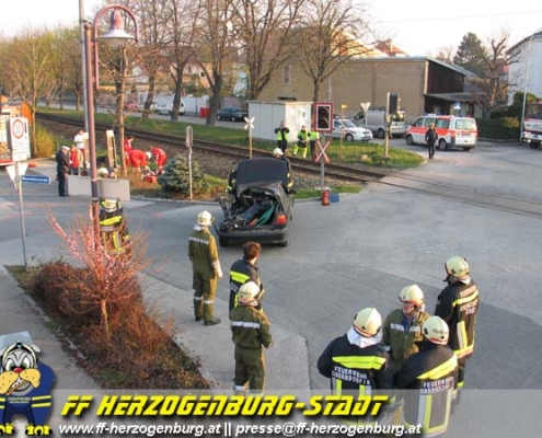 Einsatz, Technisch Am Morgen des 3. April kam es nach 7Uhr morgens beim Bahnübergang in der Jubiläumsstraße in Herzogenburg zu einem Unfall zwischen einem PKW und einer Lok.