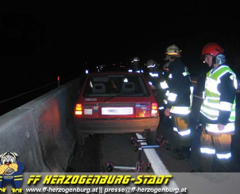 Im Bereich der Auffahrt Herzogenburg-Nord touchierte, auch noch ungeklärter Ursache, die Lenkerin eines PKW die Betonmittelleitwand.