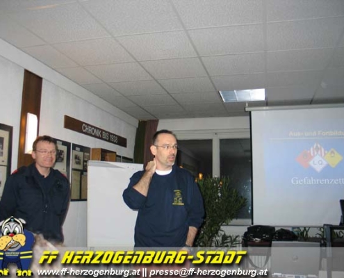 Übung Am Abend des 15. Februar hielt BI Walter Honeder von der FF Oberndorf/Ebene eine Schadstoffschulung für die Feuerwehren Oberndorf/Ebene und Herzogenburg-Stadt ab.