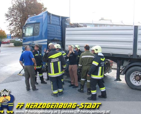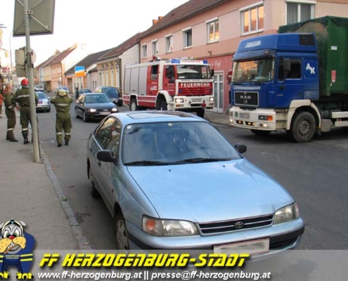 Einsatz, Technisch Am 5.Oktober meldete ein Fahrer eines Kraftwagenzuges das im Kreuzungsbereich St.Pöltnerstraße/Fischergasse ein PKW so unglücklich steht das es ihm unmöglich sei in die St.Pöltnerstraße einzufahren.