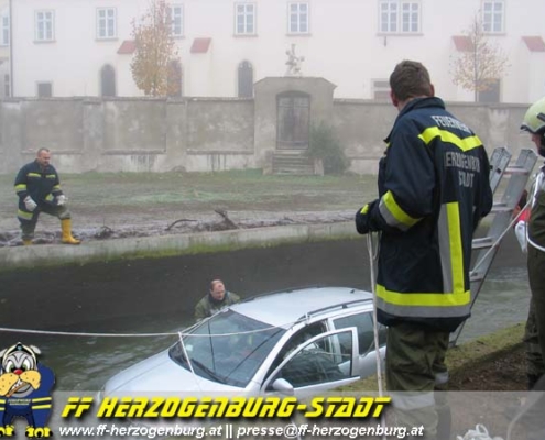 Einsatz, Technisch Am Morgen des 21. November wurde die FF Herzogenburg-Stadt um 07:45Uhr zu einer PKW Bergung aus dem Mühlbach im Bereich des Stiftes alarmiert.