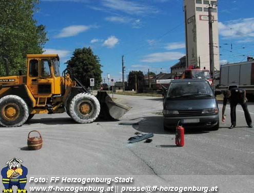 Aus noch ungeklärter Ursache stießen ein Radlader und ein Minivan seitlich zusammen.
