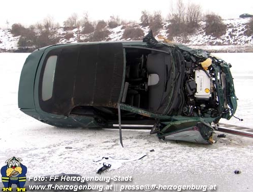 Laut Alarmmeldung war ein PKW in einen Schotterteich eingebrochen.