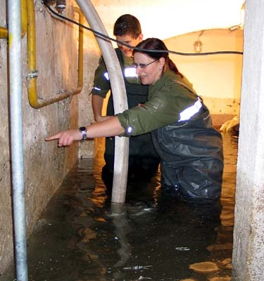 Ein Wasserohr war geborsten und Wasser trat im Haus aus.