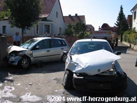 In der St-Pöltnerstraße Kreuzung Körnersiedlung stießen aus ungeklärter Ursache 2 PKWs zusammen.